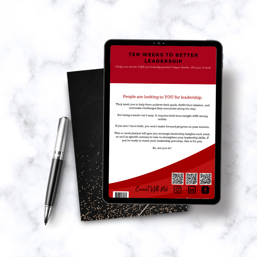 This 10-week journal will give you strategic leadership insights each week, as well as specific actions to take to strengthen your leadership skills. If you’re ready to reach your leadership potential, this is for you.